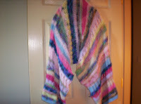 Since my last post if have been busy working on new projects and learning new techniques. I have completed my Inca Collar Tunic with has a collar that is colorwork along the lines of Faire Isle. I completed the Roulette Scarf. I have also started a scarf using Laura Bryant's color blending technique. In the planning stages are an Intarsia project, a diagonally striped tee using Naturally Caron Spa, plus the yarn for a bunch of socks, an Alpaca top, another top that will feature Nina from Fiber Arts handdyed silk and Naturally Caron Spa, and a top using Bernat Baby Coordinates in peach. Here are pictures of the most recent finished projects.